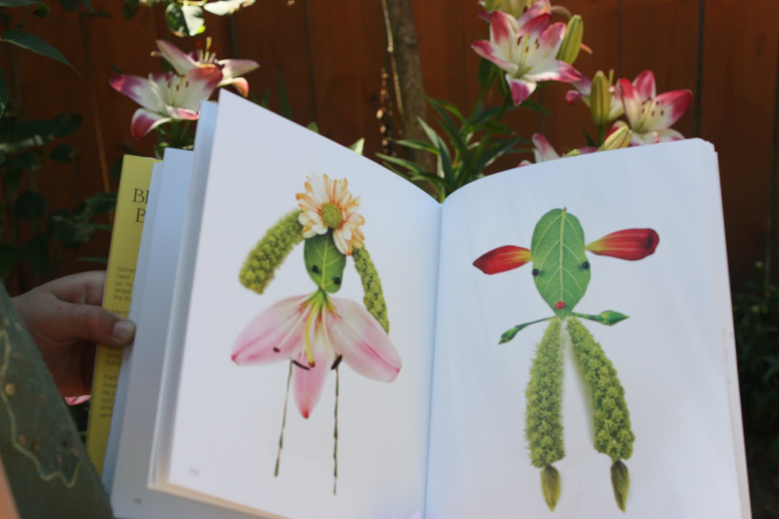 We spent about an hour collecting flowers, pressing them in the new flower press, and making creations from the book.