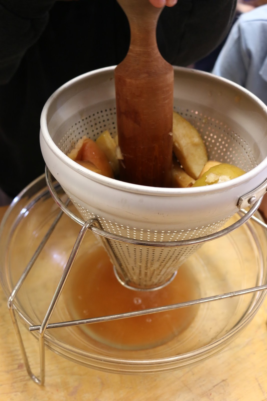 After the apples were mushy and the water was bubbly (and the smell in the room was to-die-for) we brought out the food press.