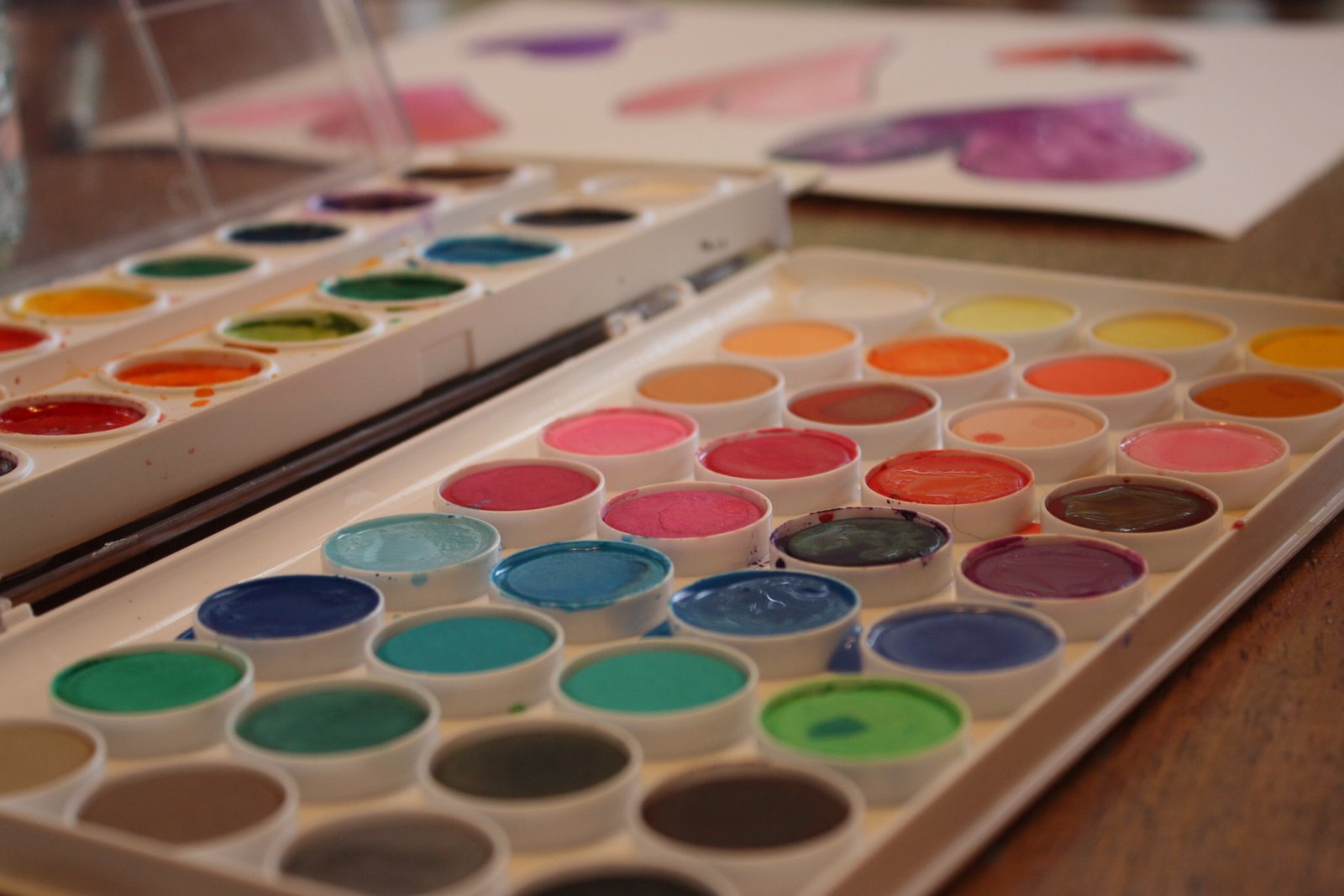 My daughter was begging to watch TV, on Sunday afternoon. I, on the other hand, didn’t think we needed to watch TV. I suggested reading, writing, playing dolls, playing a game, but nothing seems to spark my daughter’s interest. Finally, I got the watercolor paints out of the cupboard and sat down at the kitchen table. I had a little friend joining me in about 2 seconds flat.
