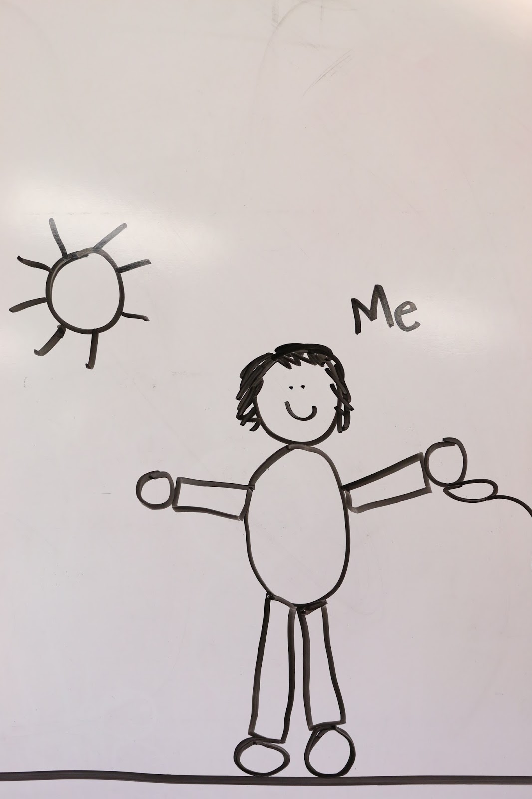 I show them that I draw a very careful circle for my head, an oval for my body, and some rectangles for arms and legs.  When I draw the circles and ovals, I make it starting at the top and curving around to the left… just like I would do if I wrote an “o” on my paper.  Our c’s, a’s, d’s, and q’s are formed in a very similar fashion, so sometimes I begin off-centered like I’m starting one of those letters.  I remind kids that I’m starting my shapes at the top, just like I start my letters at the top, and I encourage them to do the same in their stories.  I am NOT an artist.  As a matter of fact, the kids’ drawings are often better than mine.  I point out to kids that I am not good at drawing, but I try my best by using shapes and it helps me show and tell my story.