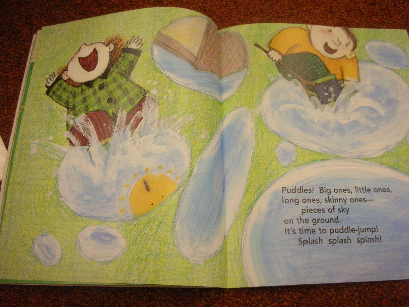 Puddles… there couldn’t be a better book for teaching schema. Schema is all of the “stuff” in our brains that we already know. We use that schema as we read to make connections to the books we are enjoying. It helps us make meaning from the text and deepen our comprehension. Is there anything children can connect better with than puddles? When we read this, EVERYONE wants to share their puddle jumping fun!